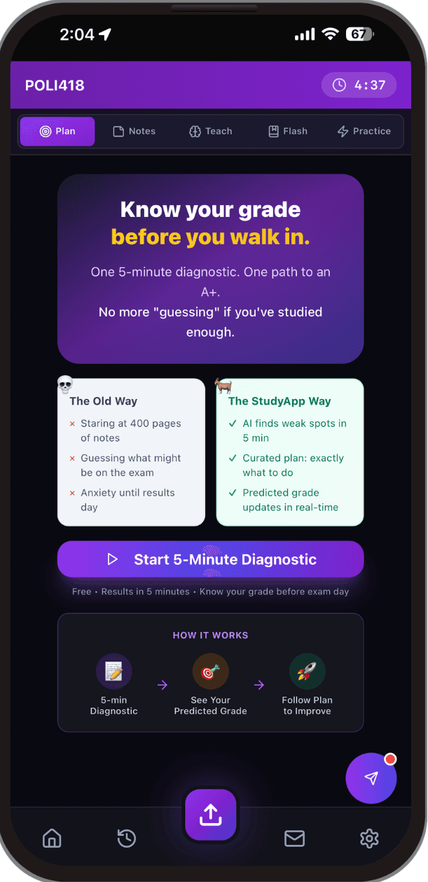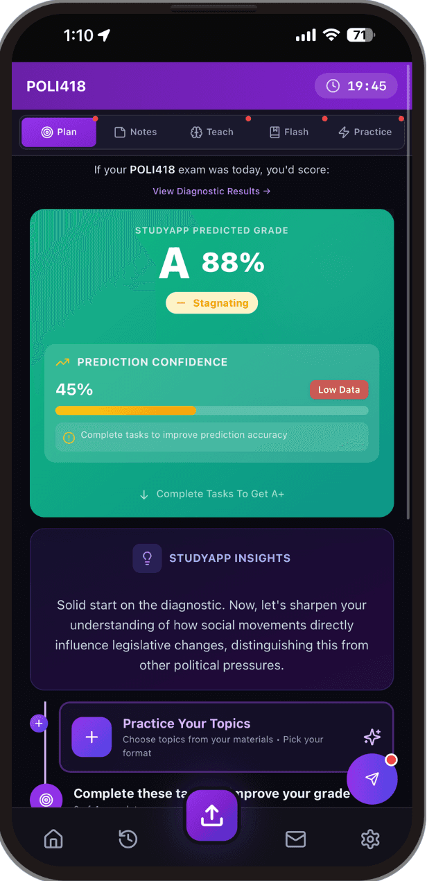 Get an accurate grade prediction based on your current knowledge. See exactly where you stand today so there are no surprises on test day.